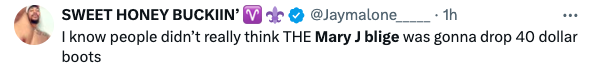 Despite the sorrow of some, supporters stood by Blige’s decision to release a more high-end product, arguing that she shouldn’t be required to sell boots at a value lower than her personal brand. Fans of the “Real Love” artist also argued that those who can’t afford the boots are probably just not a part of Blige’s target audience for this specific product.