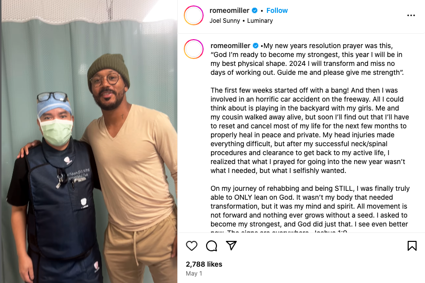 Romeo Miller explained what happened in a post alongside several pictures and videos from the year thus far, writing as a caption: