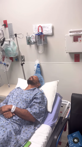 In subsequent posts added to his Instagram story, Romeo Miller shared one image of his neck taped up with band-aids while sitting in a hospital bed and another image of an IV that the celebrity dubbed “the good stuff,” adding as a caption: