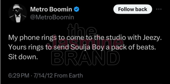 Soulja Boy shared the resurfaced Tweets on his X account (formerly Twitter) earlier today (Sunday, May 11th). In one post dated July 14th, 2012, Metro Boomin wrote: