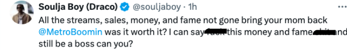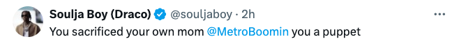 Targeting Metro’s mom, Soulja Boy wrote in one post: