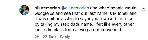 “and when people would Google us and see that our last name is Mitchell and it was embarrassing to say my dad wasn’t there so by taking my step dads name, I felt like every other kid in the class from a two parent household.”