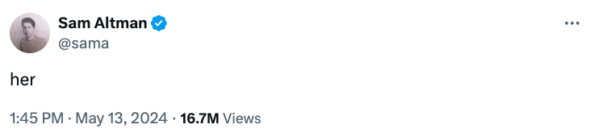 Scarlett Johansson went on to point out that Sam Altman even alluded to using her voice by referencing the 2013 film Her in a tweet he posted shortly after the program went live. In case you’re unfamiliar with the movie, Johansson stars in the film as the character Samantha, an AI operating system that the main character falls in love with.