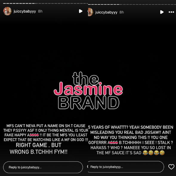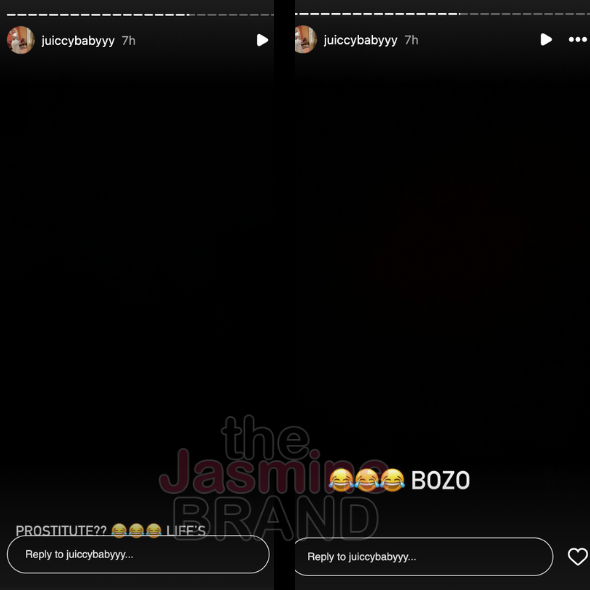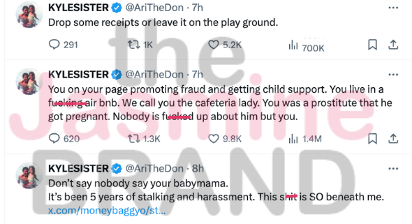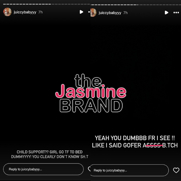 “You on your page promoting fraud and getting child support. You live in a f***ing air bnb. We call you the cafeteria lady. You was a prostitute that he got pregnant. Nobody is f**ked up about him but you.”