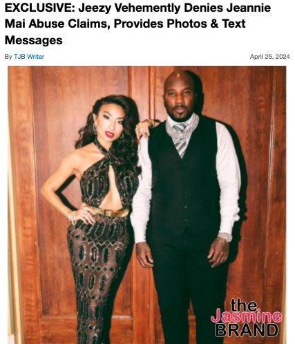 Jeezy has maintained his innocence, claiming in a response motion that his estranged spouse is attempting to tarnish his reputation with false allegations because he didn’t want to have another baby with her. As theJasmineBRAND exclusively reported, the “Put On” rapper also claimed that images Mai submitted as proof of the alleged abuse were bruises from a golf cart accident where he was also injured.