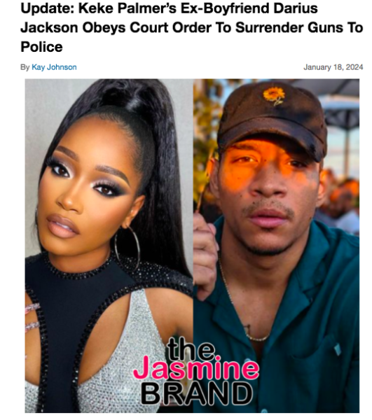 In November 2023, Palmer claimed Darius Jackson was very abusive toward her throughout their relationship. Due to the evidence she submitted to the court — which included footage of alleged abuse from Jackson — she was quickly granted a temporary restraining order and temporary sole custody of their child. In January, reports claimed the protection order was extended by six months as the pair’s follow-up court hearing was delayed to give them time to engage “in mediation before a private judge.”