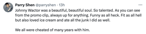 “Johnny Wactor was a beautiful soul. So talented and always up for anything. We all were cheated of many years with him.”
