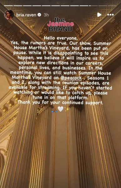 “Yes, the rumors are true. Our show, Summer House Martha’s Vineyard, has been put on pause. While it is disappointing to see this happen, we believe it will inspire us to explore new directions in our careers, personal lives, and businesses.”