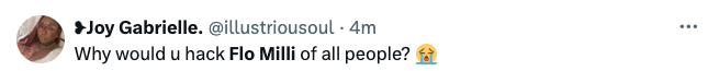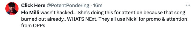 While the hacker mostly used the moment to troll and offer follow-ups, they did make it a point to attack Flo Milli’s rap colleague Nicki Minaj. In two posts aimed at the “FTCU” rapper, the hacker wrote: