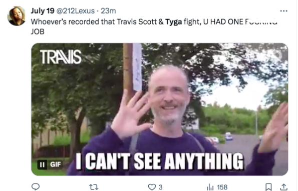 According to a report from TMZ, things kicked off after nightclub tycoon Richie Akiva said something on the mic along the lines of “We got T-Raww, AE, and Travis in the building,” to note both rappers (and Alexander “AE” Edwards) were in attendance. Allegedly, Travis had an issue with being lumped together with someone else the mother of his two children was once romantic with and proceeded to snatch the mic from Richie’s hand.