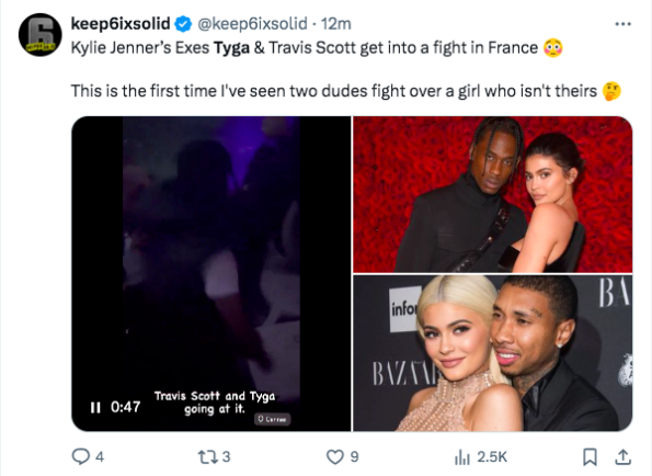 The reason behind the fight is unknown at the moment, however, rumors are already swirling that it has something to do with their common denominator; Kylie Jenner. In case you need a refresher, Kylie Jenner dated Tyga for years, reportedly starting their relationship in 2014 when the reality TV star was 17 and the “Taste” rapper was 24. They ended things for good sometime in 2017 and Kylie Jenner moved on to Travis Scott, eventually welcoming two kids together before they called things off in January 2023.