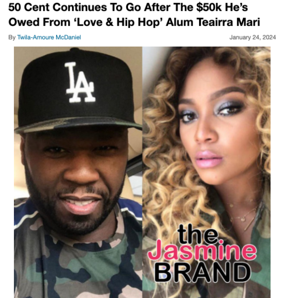 The former couple has been back and forth in court for years after a judge awarded 50 Cent a judgement of $50,000 in legal fees and expenses after Teairra Mari unsuccessfully sued him over revenge porn back in 2018. While the reality star has verbally made it a point to claim that she has no intentions of paying the money, 50 has made it clear he will not drop the matter, and has continued to pursue the issue in court.