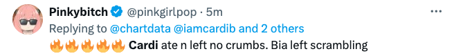 At this time, it doesn’t appear that BIA has reacted to the newest shot from Cardi. Social media users, however, have certainly been chiming in with many giving Cardi her props.