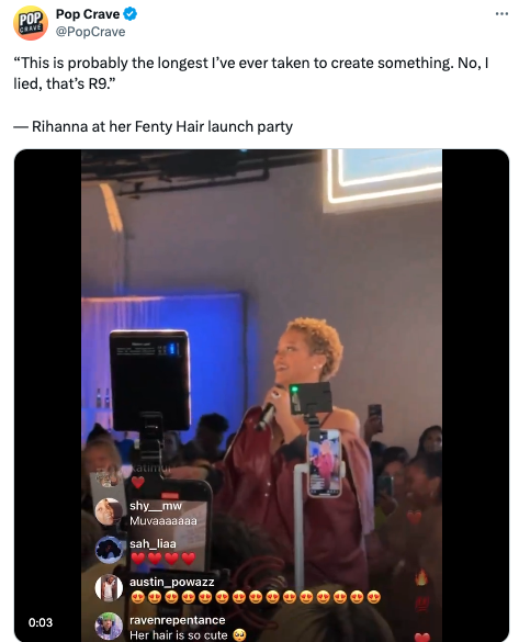 Rihanna made the remarks during a red carpet interview ahead of her Rihanna x Fenty Hair launch party at Nya Studios in Los Angeles, California on Monday (June 10th), stating: