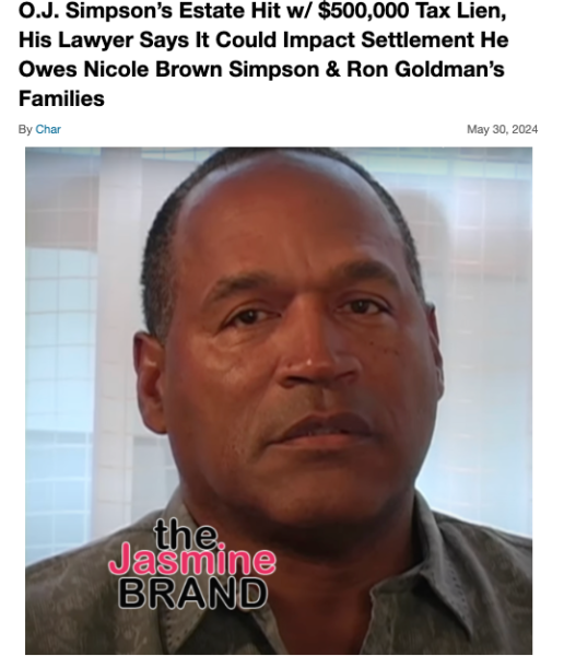 In case you’re unfamiliar, despite being acquitted of charges related to Nicole Brown and Ron Goldmna’s 1994 murders, Simpson was found liable for their deaths in a subsequent civil suit. Simpson went the majority of his life without paying any significant amounts on the $33 million settlement, which Goldman’s father Fred Goldman says has now ballooned to over $100 million with interest.