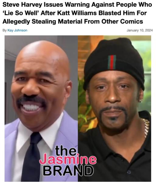Steve Harvey’s remarks come several months after Katt Williams accused him of stealing material from other comics. If you recall, the stand-up comedian made the claim during an appearance on Shannon Sharpe’s Club Shay Shay back in January. As we previously reported, Harvey opted not to directly address Williams right after the interview aired. He did, however, make an ambiguous comment about not believing people who lie well shortly after.