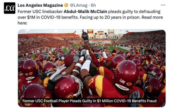 Former USC Linebacker Abdul-Malik McClain Facing 20 Years In Prison After Pleading Guilty To Covid-19 Scheme