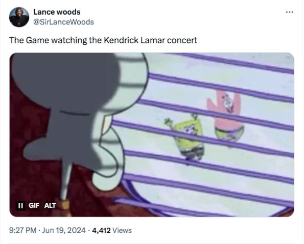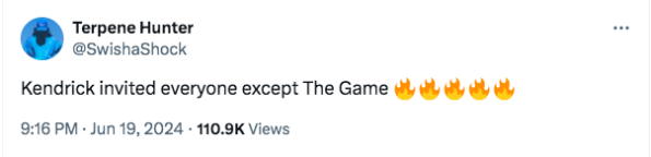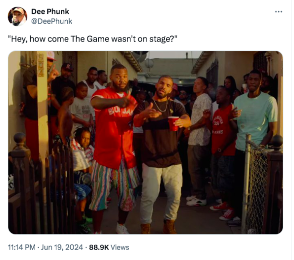 As you may already know, The Game stood ten toes down beside Drake amid the height of the feud. While it’s unclear if Game’s loyalty to his Canadian friend had anything to do with his absence, the internet definitely believes it does. One person on X wrote,