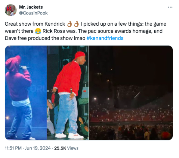 The lineup for the night also included Westside Boogie, DJ Mustard, Steve Lacy, YG, Ty Dolla $ign, Roddy Ricch, and many many more! However, following the concert, which was live-streamed on Prime Video, many pointed out that The Game was missing in action. The Compton rapper is known for proudly repping where he’s from, making Kendrick Lamar’s event the perfect place for him to showcase his love for his city. However, that more than likely didn’t happen due to the side he took during the Kendrick vs Drake battle.