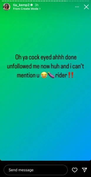 “Oh ya cock eyed ahhh done unfollowed me now huh and i can’t mention u, d*ck rider!!”