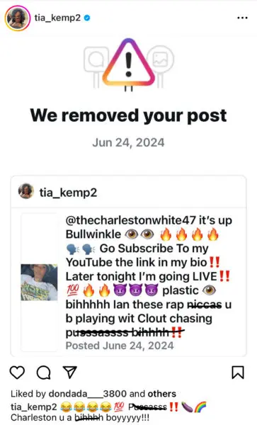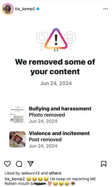 Despite Kemp sharing uploads of her own, multiple posts were ultimately taken down by Instagram after the content was reported to the platform.