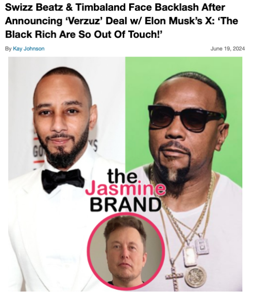 The post came just a few days after Swizz Beatz and Timbaland drew widespread backlash for inking a deal with the Tesla CEO, which will see them produce Verzuz content exclusively for X at no cost to internet users. As we previously reported, many criticized the partnership immediately after its unveiling, arguing that Elon Musk has a history of racial discrimination allegations and therefore shouldn’t be embraced by Black-owned businesses.