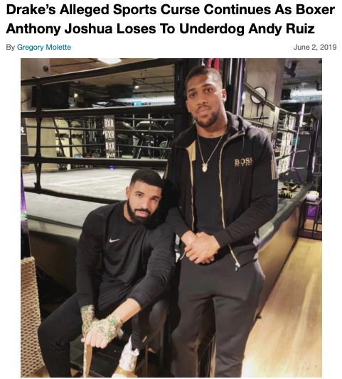 The back-to-back Ls for Drizzy may come as no surprise to those who’ve followed his history with sports betting over the years. Though he’s had some wins, internet users have been joking that Drake’s gambling efforts are cursed after he backed boxing world champion Anthony Joshua who shockingly lost to underdog Andy Ruiz in 2019.