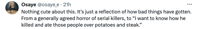 “I mean Jeffrey Dahmer’s pretty fascinating.”