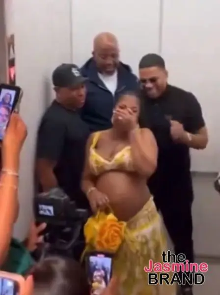 Footage from the special day showed singer Ashanti, 43, escorted by her husband Nelly, 49, was met with cheers and congratulations from friends and family as she exited an elevator into her surprise baby shower, looking visibly shocked with her hand over her mouth.
