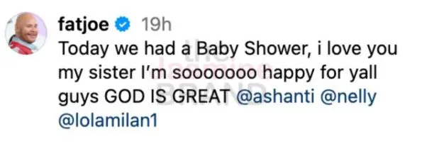 “Today we had a Baby Shower, i love you my sister I’m sooooooo happy for y’all guys GOD IS GREAT @ashanti @nelly @lolamilan1”
