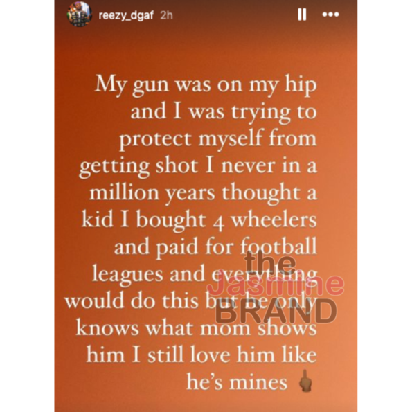 “I was trying to protect myself from getting shot I never in a million years thought a kid I bought 4 wheelers and paid for football leagues and everything would do this but he only knows what mom shows him I still love him like he’s mine”