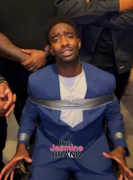In the music video, posted to Instagram on Wednesday (July 10), Desi Banks is seen in a blue suit, tied up and held hostage, pleading to be released for seemingly talking trash online.