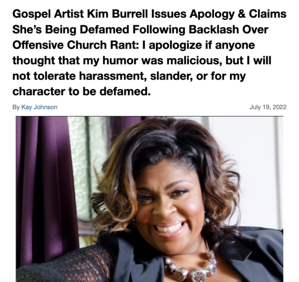 Over the years, Kim Burrell has made a series of other controversial comments from the pulpit, including statements about “broke people” and “walking by faith without a mask and no vaccine” amid the COVID-19 aftermath.