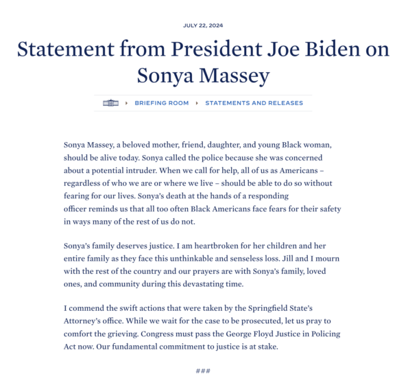 Body Cam Footage Reveals Illinois Officer Fatally Shooting Sonya Massey + President Biden & Ben Crump Speak Out