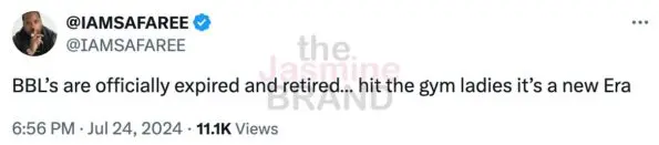 DreamDoll isn’t the first celebrity to declare that BBLs are out of style. Yesterday (July 24) reality TV star Safaree Samuels took to X (formerly Twitter) to announce that the trend is officially “retired”: