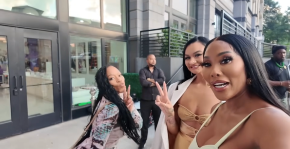In the clip, Ming Lee, Akilah Coleman, and Monyetta Shaw Carter were seen outside Kenya Moore’s hair spa grand opening, reacting to the rumored incident that reportedly took place inside.