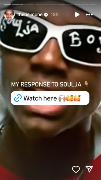It doesn’t appear that B. Simone was rattled too much by Soulja’s comments, however. Responding to his video, she wrote in the comments section: