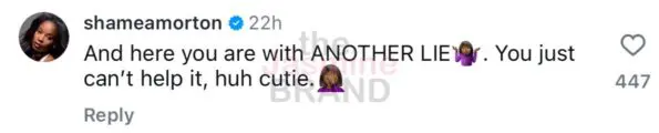 Shamea Morton was quick to clap back, commenting on Drew’s post to accuse her of lying once again: