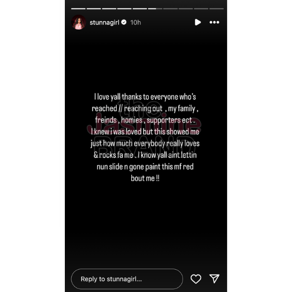Stunna Girl also thanked her fans and supporters on her Instagram Story last night and wrote,