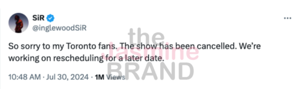 Confirming that the concert will actually not move forward, SiR added to the thread: