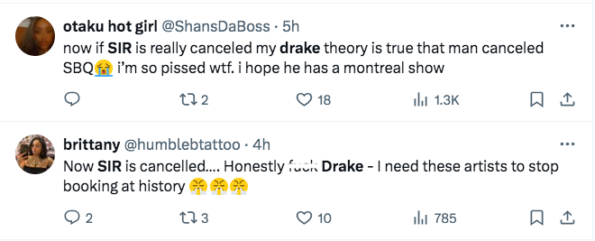 R&B singer SiR’s Toronto concert was abruptly canceled. The event was scheduled to take place today (July 30) at History, which Drake helped design.