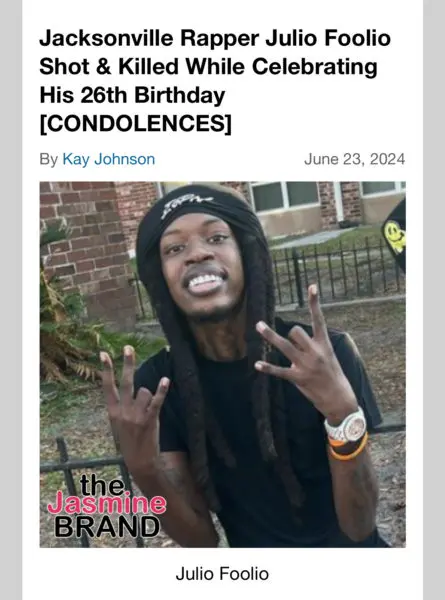 As previously reported, Florida artist Julio Foolio, real name Charles Jones, was shot and killed outside a Holiday Inn on June 23. He was killed in an apparent ambush while celebrating his 26th birthday in Tampa. Three other people were injured in the shooting but have since made a recovery.
