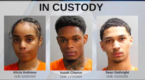 While there’s a total of five suspects in the murder case, authorities reportedly located and arrested Sean Gathright, 18, Alicia Andrews, 21, and Isaiah Chance Jr., 21, over the weekend in Jacksonville. There are warrants out for two other suspects in the case.