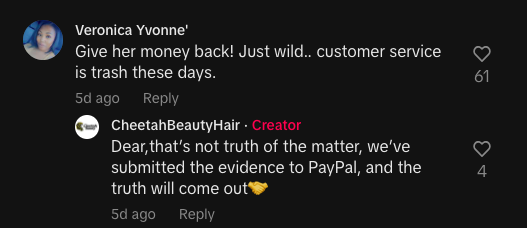 CheetahBeauty Hair’s comment section on TikTok has been flooded with people demanding answers over the allegedly leaked address. Responding to one, the company denied the claim and said,