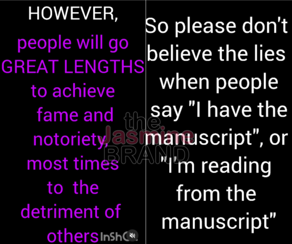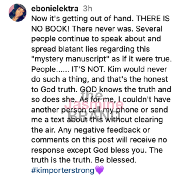 Eboni Elektra went on to label the reports as a “blatant lie” and urged people not to believe the “lies when people say ‘I have the manuscript,'” adding as a caption to the post:
