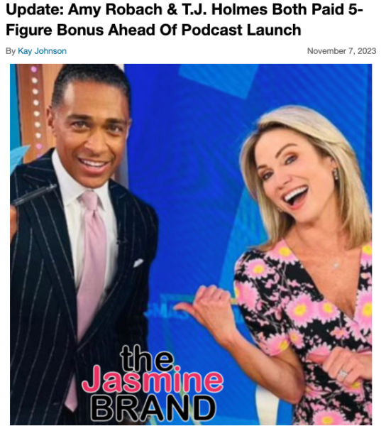 As you may recall, Amy Robach, 51, and T.J. Holmes, 46, got the boot from GMA3: What You Need to Know last year after their controversial (alleged) affair made its way to the limelight. While the network confirmed that their relationship didn’t necessarily violate company policy, both were let go because the situation was simply too distracting, as their romance surfaced prior to them legally ending their own separate marriages.