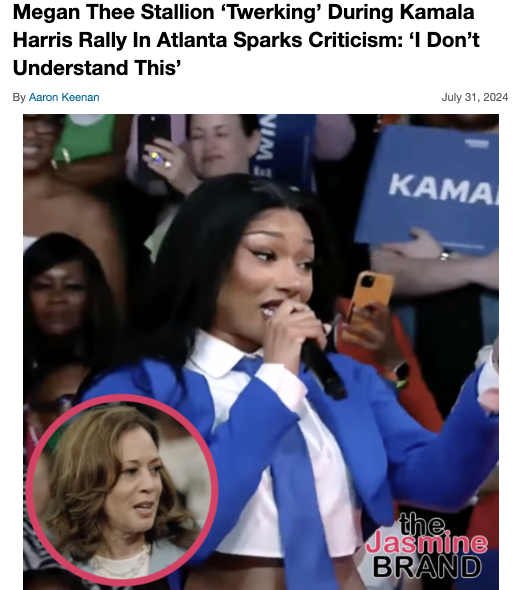 As we reported, Megan The Stallion’s July 30th performance at Kamala Harris‘ campaign rally in Atlanta was received with mixed feelings. While some commended the collaboration, others argued that the “Mamushi” artist “twerking” and being “vulgar” on stage was out of place.