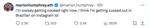 “I’m lowkey getting cooked right now. I think I’m getting cussed out in Brazilian on Instagram lol”