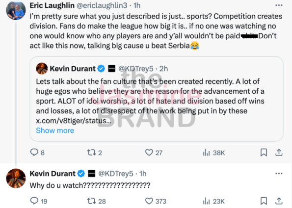 While Team USA ended up taking home the win 95-91, many blasted the players for even allowing the Serbian team to get an advantage in the first place. Some who shared their critical opinions found themselves catching Kevin Durant’s wrath, as he defended his teammates and reversely called out toxic fan culture. Responding to one user who wrote: