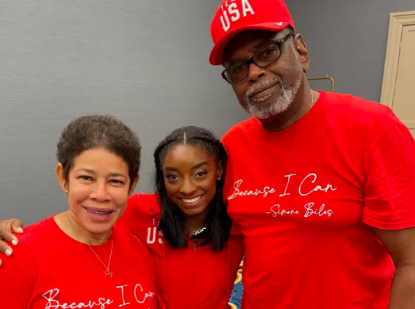Simone Biles with her adoptive parents, Ronald and Nellie Biles
